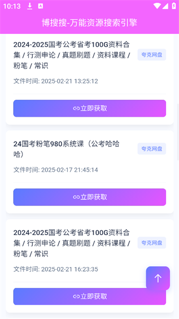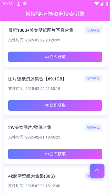 2.搜索后在同一个页面划屏到下面,可以看到丰富的网盘资源,找到喜欢并点击“立即获取”
