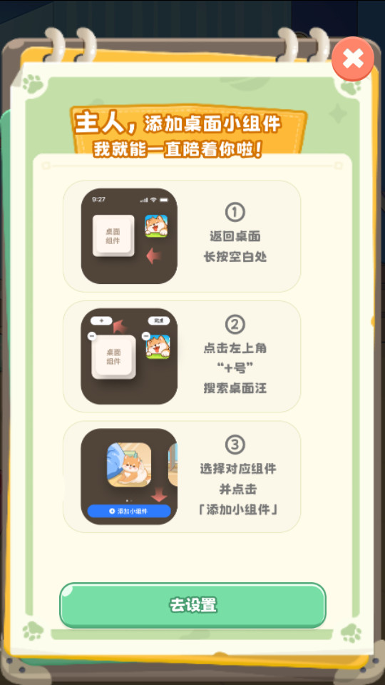 创新的玩法,通过设置桌面小组件,把可爱的小狗养在桌面上~