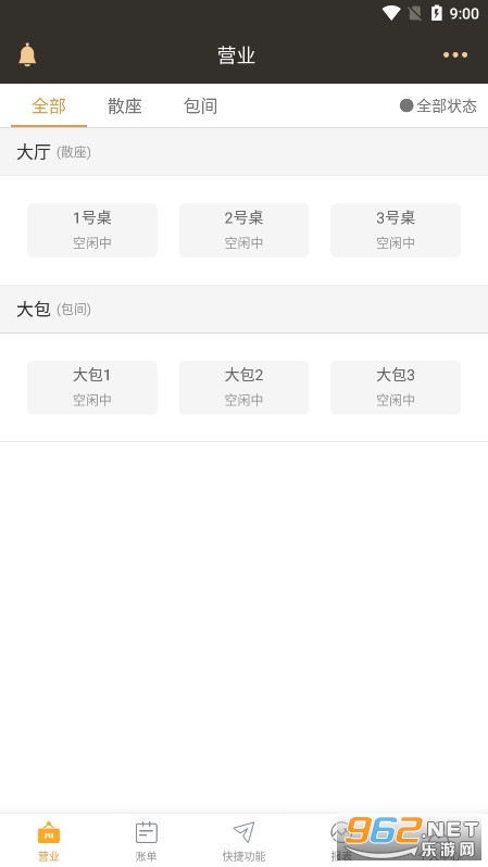 【日常营业管理】:开单、包间预订、结账支付、吧台消费、员工交接班。