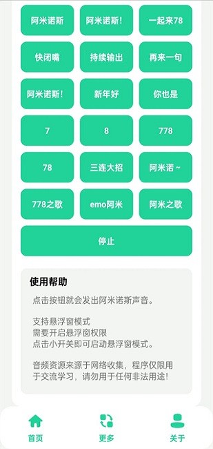 阿米诺斯盒手机版是由网络热梗“阿米诺斯”所打造的语音盒子。该盒子中包含了阿米诺斯事件里的所有语音短句,点击就可以直接播放。该工具在获取悬浮窗权限后还可以悬浮显示,在游戏,语音聊天等等场景下都可以使用。