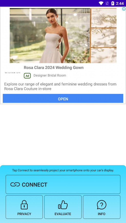1、在962本站下载mirrorlink车载app以后,找到【CONNECT】连接选项。