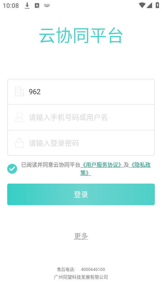 1.下载安装并打开云协同平台app,点击【同意】同意隐私政策