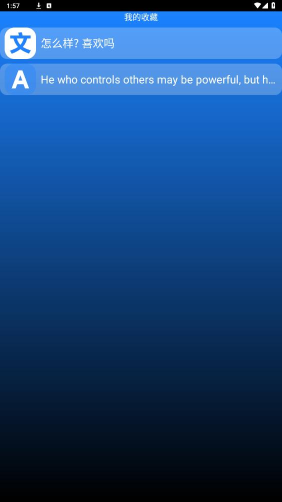 我的收藏中可以查看自己收藏的英汉翻译语句