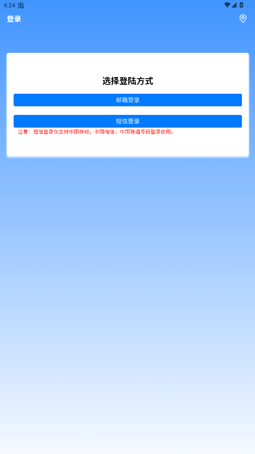 打开ymobd,进入登录界面,选择登录方式,这里以邮箱为例