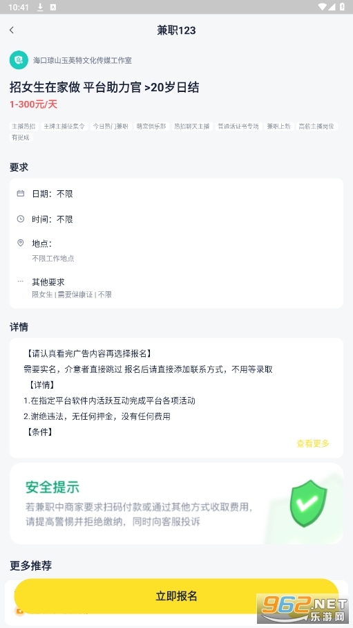 【兼职认证】兼职123所发布的每一个职岗位都通过严格多重审核,帮你层层过滤筛选、淘汰劣质兼职!