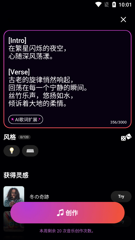 输入关键字,点击【AI歌词扩展】