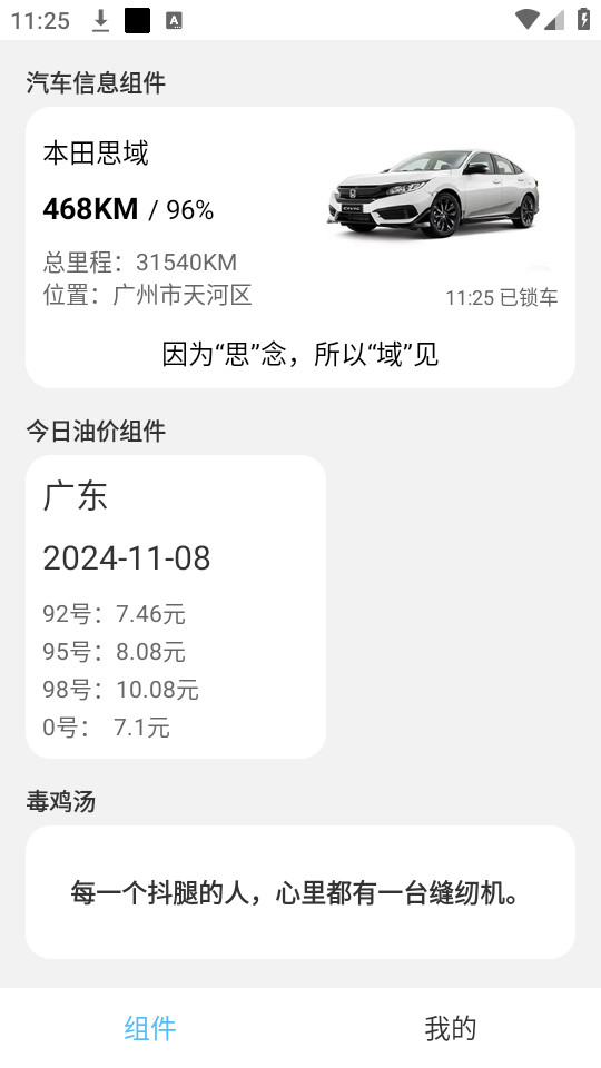 《汽车小组件》是一款专为车主设计的汽车状态手机小组件工具,旨在帮助用户实时掌握车辆信息,提升用车体验。用户可以在app中添加自己的车辆信息,并通过桌面小组件实时查看车辆的状态,如行驶速度、里程、电池续航等。界面设计简洁明了,用户可以轻松上手并快速找到所需功能。
