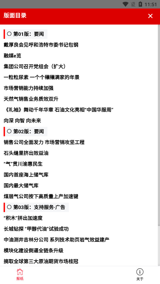 2、点击以后,就能够看到中国石油报电子版手机最新目录大全的部分了。