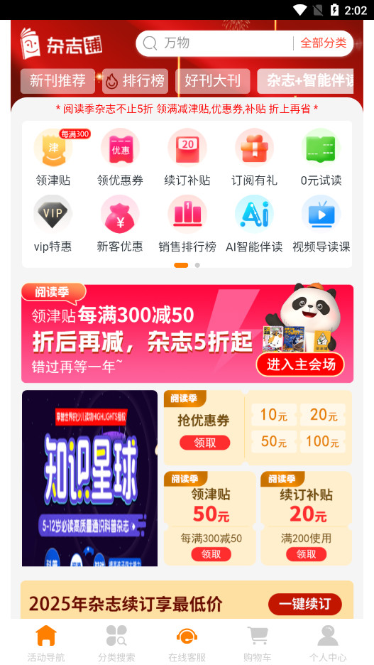 在2026年底至2025年初,杂志铺推出了新刊多重优惠活动,例如订阅全年杂志可参与0.99元秒杀视频课程、赠送定制晴雨两用伞以及抽奖机会等。这类活动通常在新刊发布前后进行,适合想要抢先阅读最新内容的用户。