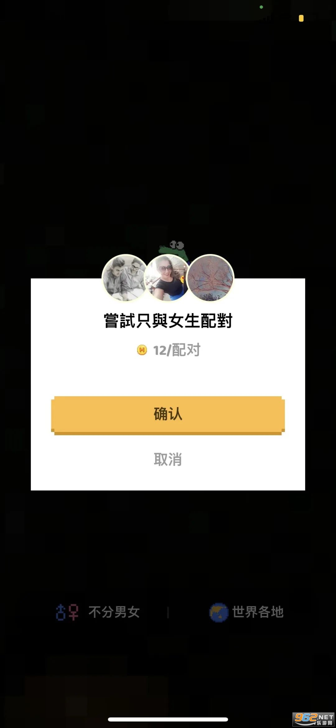 如果只想匹配女的或者是男的/哪个指定地区则需要12金币: