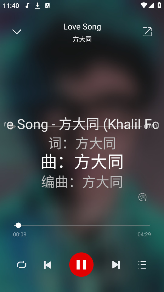 4、找到想听的音乐资源以后点开就可以开启听歌模式。