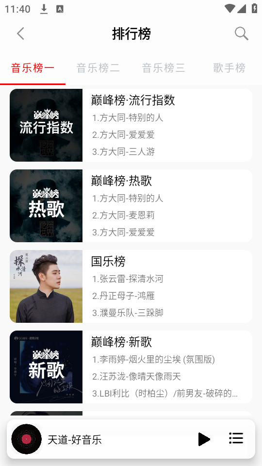 《天道音乐》是一款专注于音乐播放和发现的音乐应用,提供强大的音乐搜索功能,用户可以通过关键词快速找到自己喜欢的音乐。持在线播放和离线下载音乐,用户可以随时享受高品质的音乐体验。根据用户的听歌历史和喜好,智能推荐相似的音乐和歌手,帮助用户发现更多优质的音乐资源。
