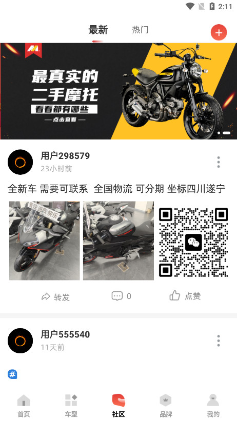 3、【社区】线上综合交流板块,有对摩托车有关的经验分享,或是出售转让等交易操作,可在此完成。