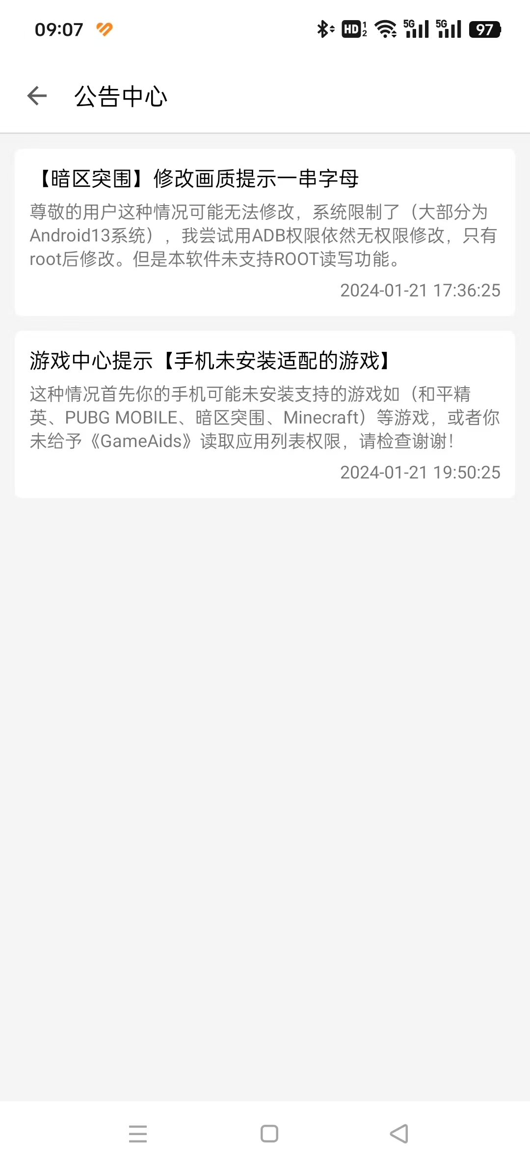 手慢无力?这款辅助软件助你稳定吃鸡《GameAids画质助手》专为安卓用户设计的游戏优化工具,主要针对射击类游戏提供画质、帧率、准星等参数的深度调整功能,适配多款热门游戏。自动识别并适应手机运行,无需玩家们进行繁琐的手动设置。无需担心有卡顿掉帧的烦恼,不占内存,安全兼容,不会出现无缘无故封号的情况发生。