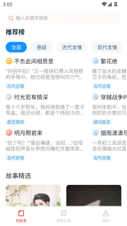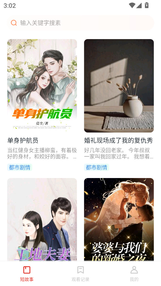 故事分类、搜索栏的设置让用户可以快捷查找想看的故事,省时省力。