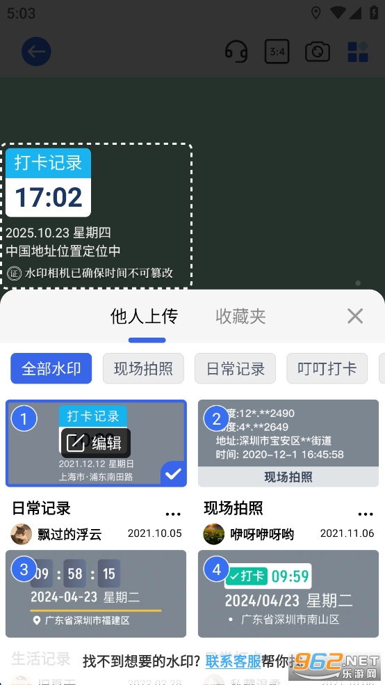 水印添加:用户可以在拍照时或拍照后添加水印,水印内容可自定义,包括文字、图片等,方便用户进行打卡、标记等操作。
