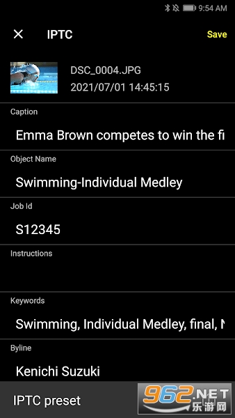 将照片导入到智能手机或平板电脑时,IPTC信息会添加到照片。