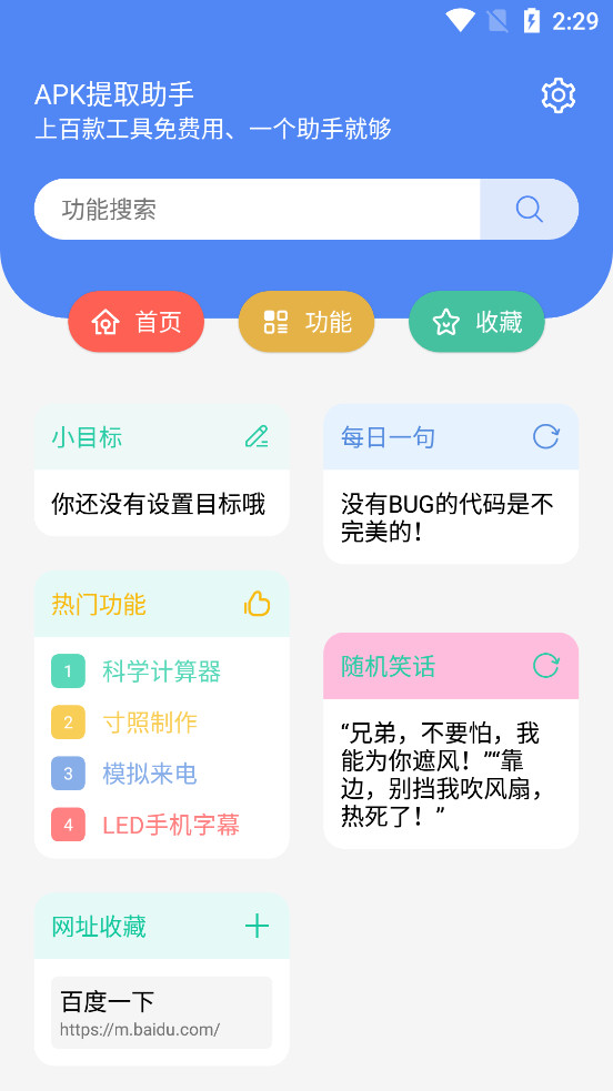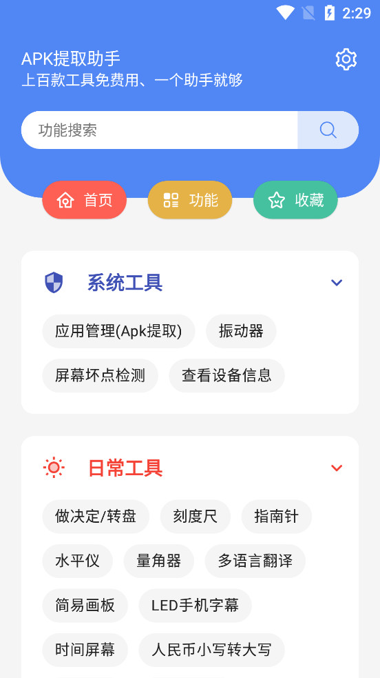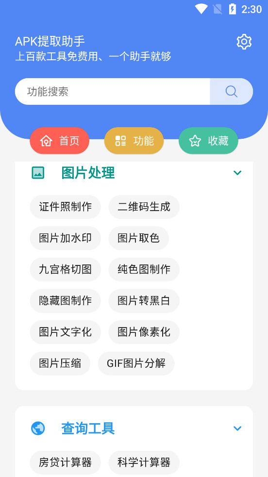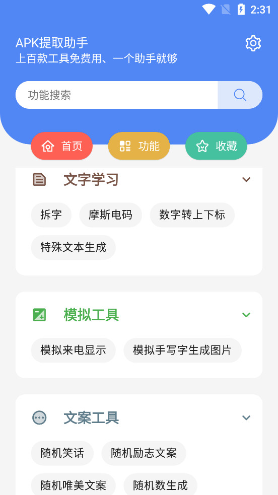 《APK提取助手app》是一款集合了上百款常用工具的综合性软件,致力于为用户提供一站式的文字、图片、视频、文案及日常工具服务。无论您是需要进行简单的文本编辑、图片处理,还是复杂的视频剪辑、文案创作,APK提取助手都能轻松满足您的需求。