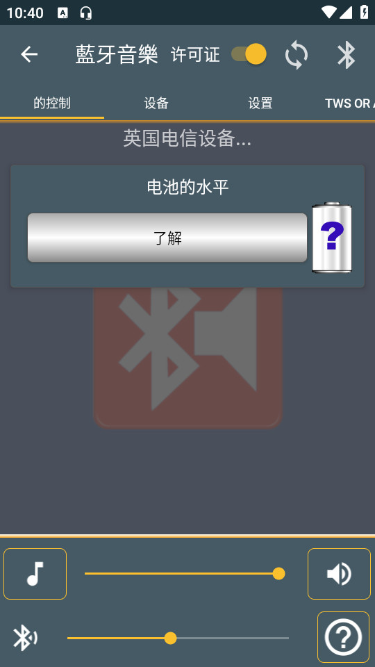 3、可以对音乐和蓝牙的音量进行调节,拖动音量条就能实现控制;