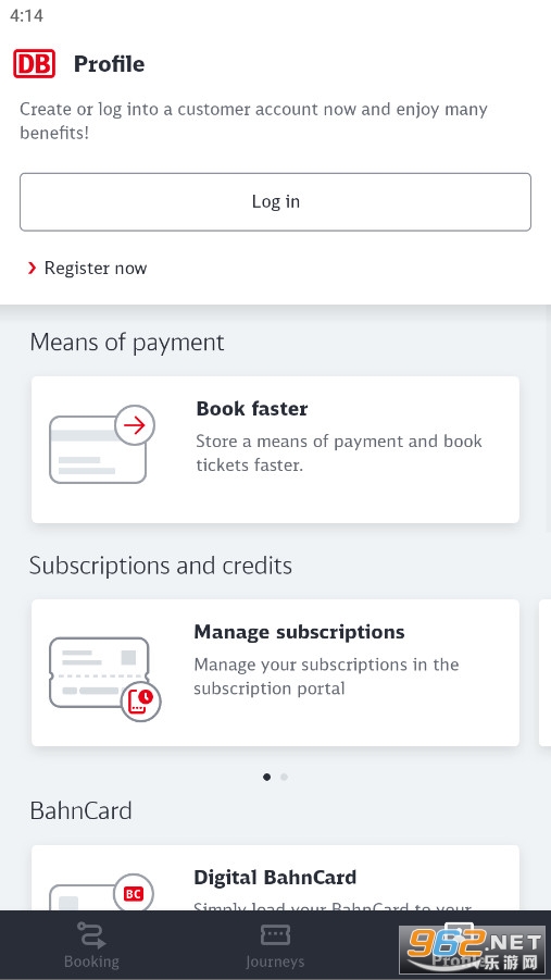 易于使用的底部导航预订、旅程和个人资料部分:DB Navigator的界面设计简洁明了,用户可以轻松地通过底部导航菜单预订交通工具、查看旅程计划和个人资料。