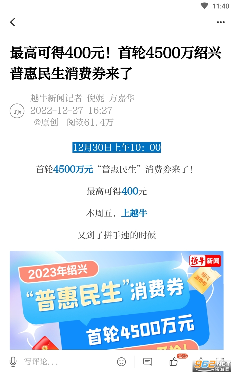 越牛抢券怎么抢?越牛抢券有几次?越牛抢券入口在哪里?越牛抢券什么时候发?越牛抢券是越牛新闻推出的一款全新的功能,通过此平台用户可以可以帮助用户快速领取绍兴市政府发放的消费券,操作简单,除此之外,大家还可以在越牛新闻上面看新闻,读资讯,了解身边发生的大小事!