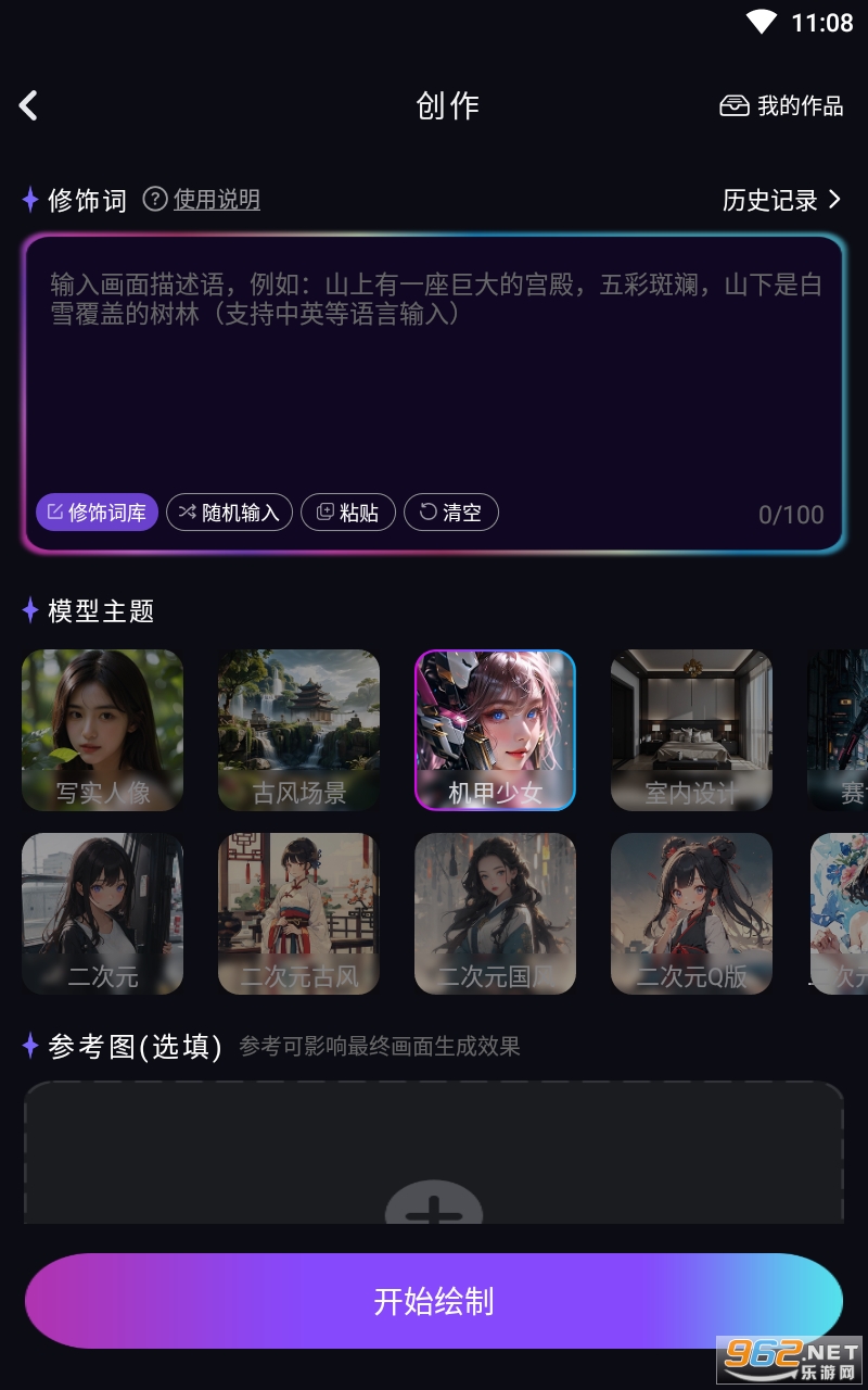 【观赏优秀作品】应用内展示了很多精美的实例图片,或许可以激发您的创作灵感。