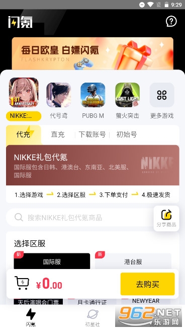 闪客pubg代充(闪氪)是专为一些手游国际服提供充值的平台,在这里最近热门手游手游包括nikke胜利女神、apex手游、原神、以闪亮之名等众多游戏的国际服或者港台服都可以在线直充,安全承诺放心使用!
