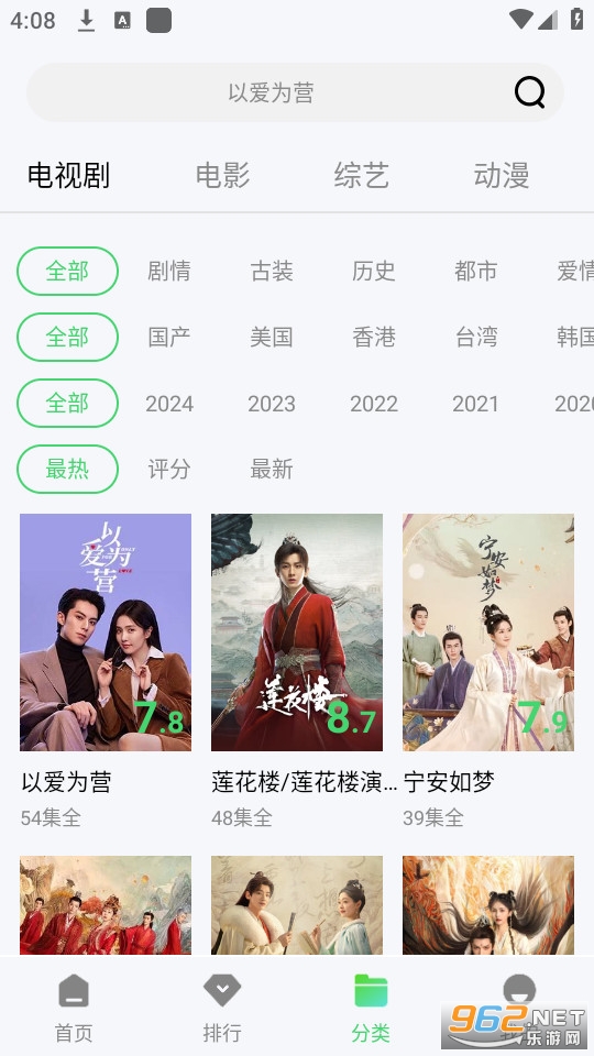 1、整合传统搜索,精选精选和排名推荐,方便查找爱情电影。