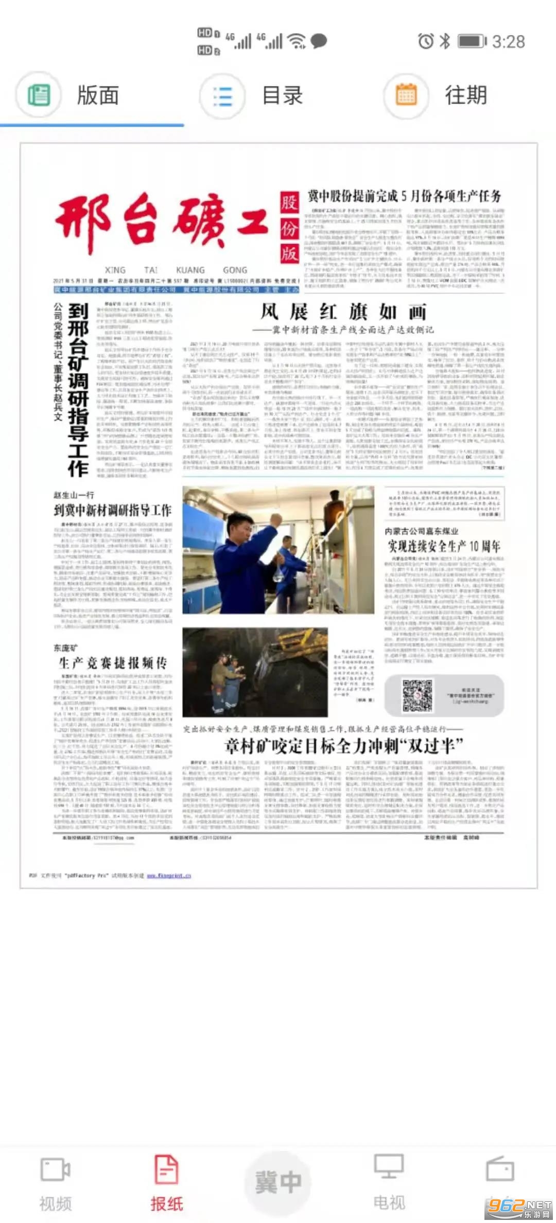 1、点击“报纸”——《邢台矿工》数字报入驻其中,您可以在标题栏,按照导航进行分期、分版面阅读。