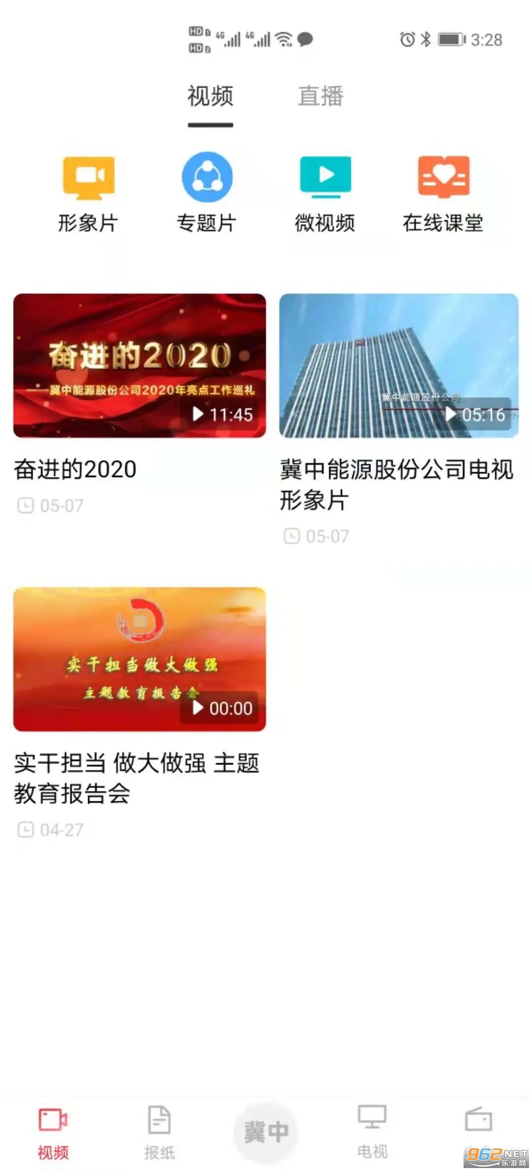 3、点击“视频”——公司形象片、专题片、微视频、在线课等宣传视频、学习资料全都囊括其中,拥有直播互动功能,您可以通过点赞收藏、观看直播实现互动交流,拼一拼咱冀中“网红”。