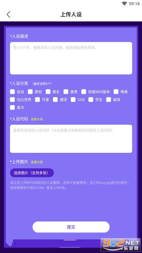 支持上传分享人设代码,与小伙伴分享乐趣。