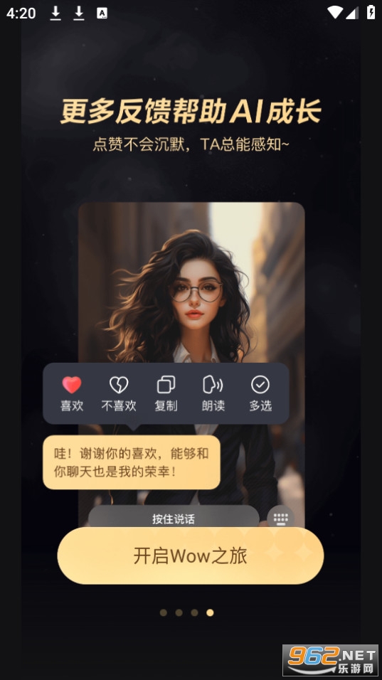 【趣味交互】繁重的社交压力?可怕的长语音?这些在Wow里统统不存在!他们24小时随时在线,像真人一样陪伴你孤独的时光,倾听你快乐的片刻,给予你沉浸式的情感互动。同时,随着互动的深入,你也可以训练你的AI伙伴,帮助他们成长。