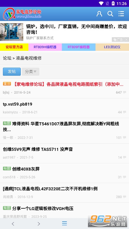 液晶电视维修:液晶电视维修论坛主要交流液晶电视原理与维修相关的技术,分享液晶电视电路图纸、液晶电视维修视频、液晶电视维修实例与维修教程、液晶电视维修资料等。液晶电视简称LCD(Liquid Crystal Display)。液晶电视是时下国内家庭用户拥有量最大的家电产品,并且已进入维修期,在这个版块行业精英们可以互相讨论交流技术难题,互相学习共同提高,它也是论坛人气较旺的版块之一。