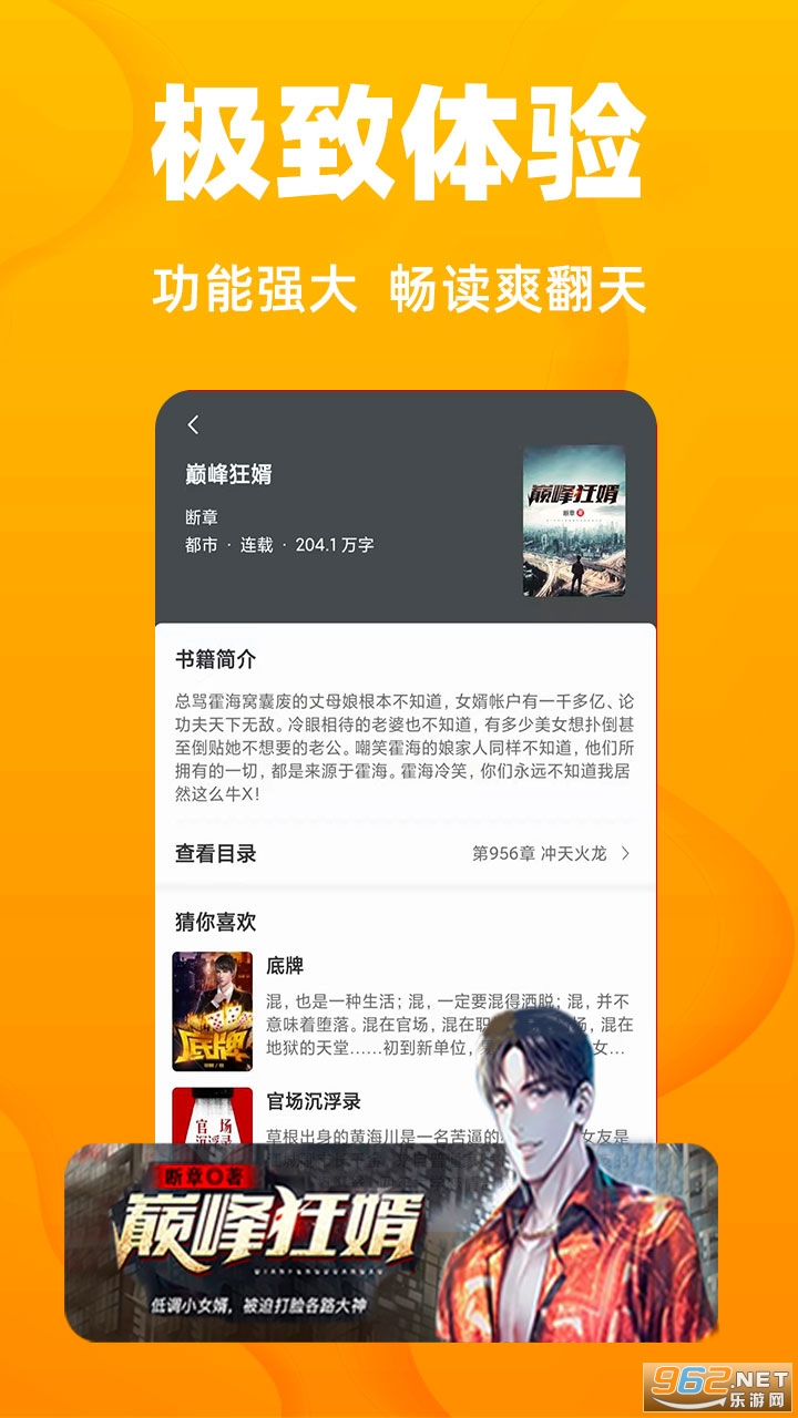 3、直观简洁的界面设计,流畅的翻页效果,追更小说及时更新推送,全局夜间阅读模式,致力于让您获得更好的阅读体验。