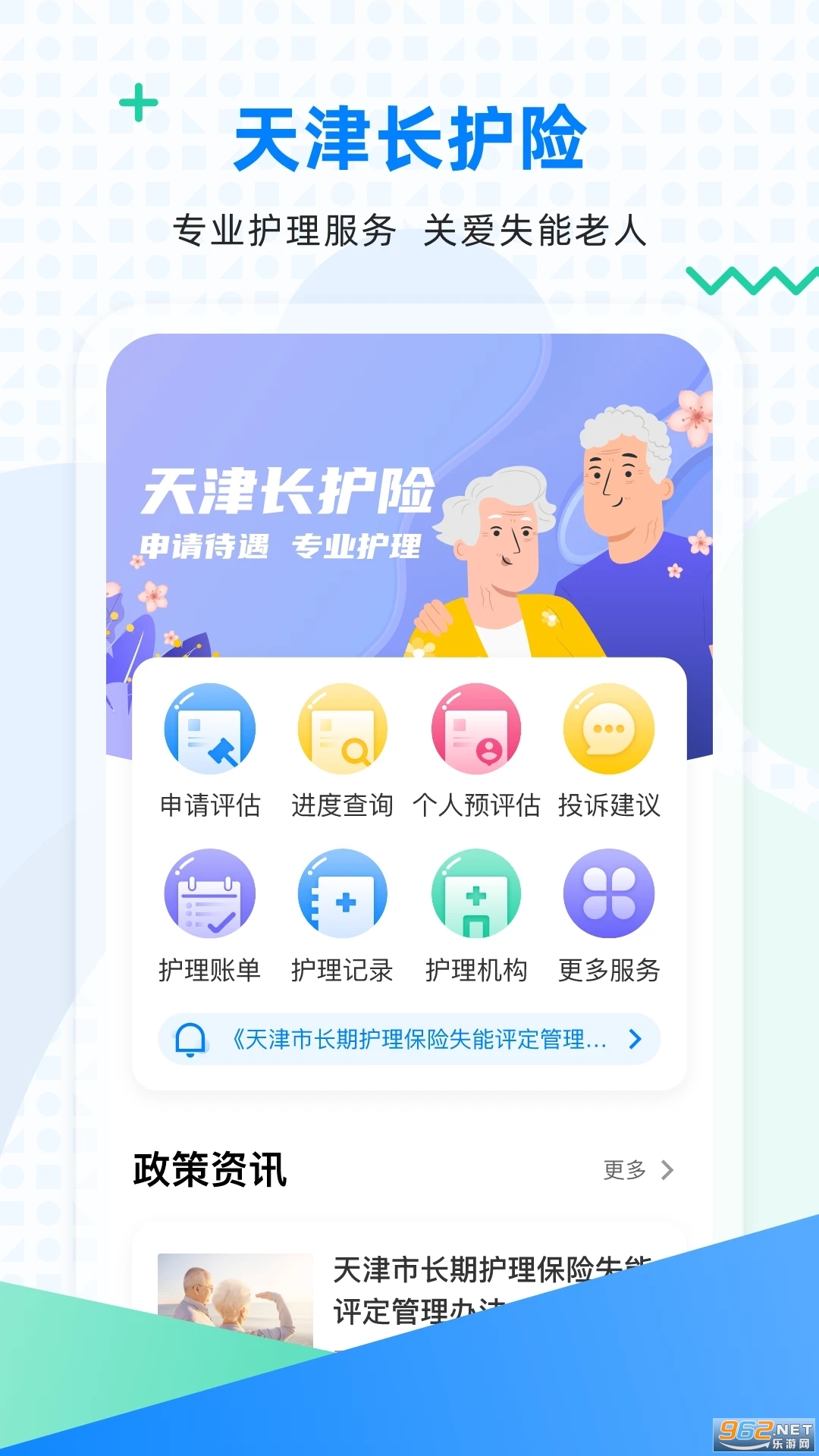 专为天津市民提供长期护理保险服务的手机应用。它可以帮助用户管理自己的保险保单,提供便捷的保险使用体验,包括参保人证件类型优化、上传护理服务凭证优化、评估申请交互优化等。