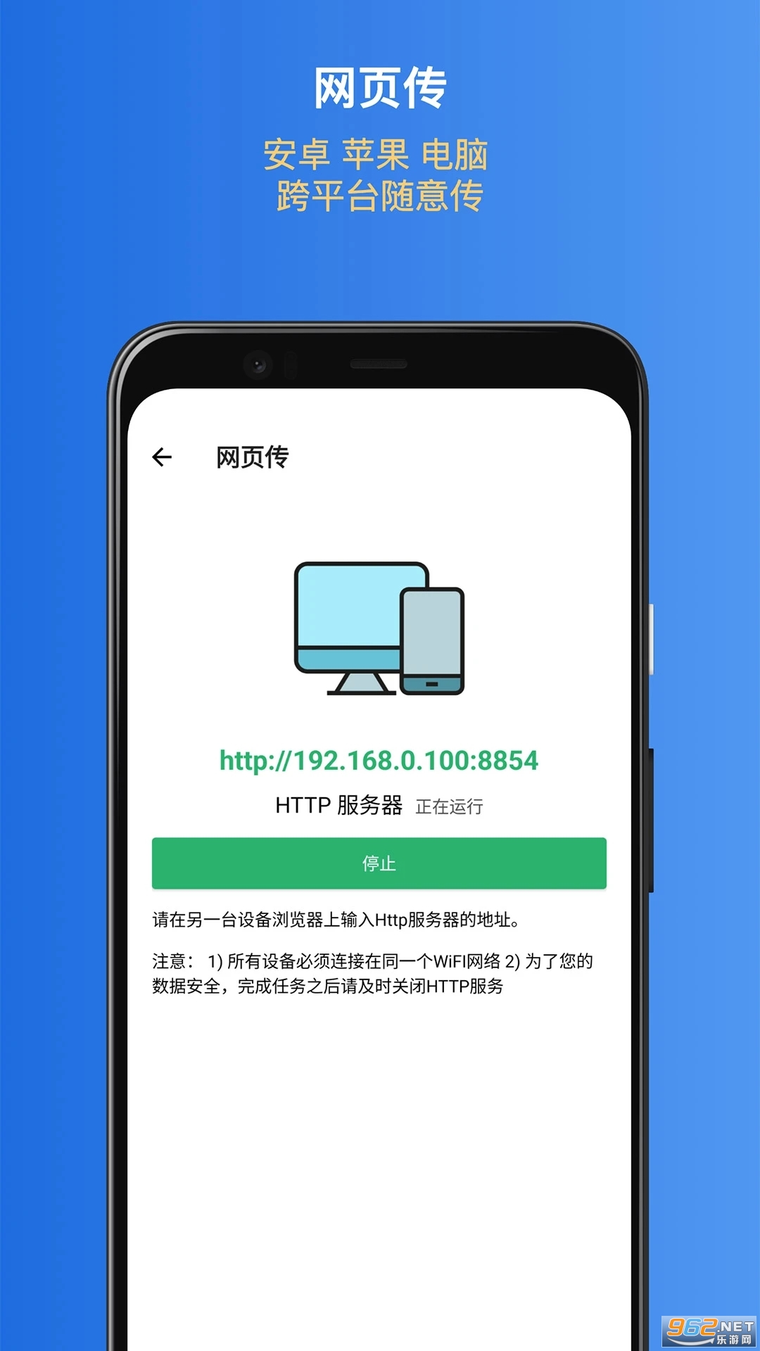 + 网页传:跨平台传输,支持从安卓传输到苹果 IOS, 电脑等多种设备