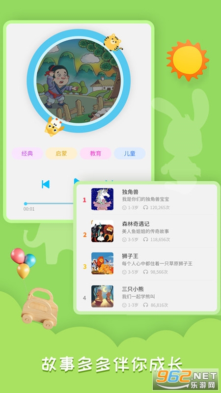拥有海量的故事资源,能够满足不同年龄段儿童的需求。这些故事都经过精心筛选和整理,以确保内容的健康、积极和有趣。此外,软件还提供了一个详细的分类功能,方便用户根据孩子的兴趣和年龄选择合适的故事。