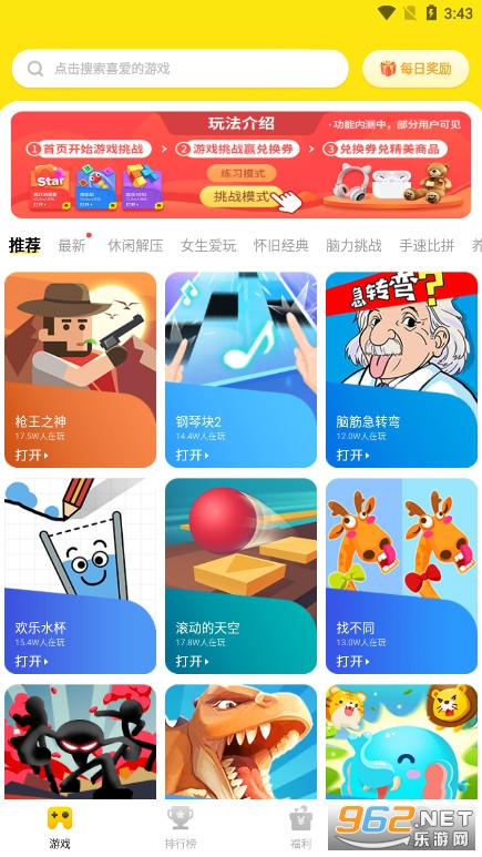 4、挑战众多游戏关卡,乐趣不断升级,完成目标即可获得礼品,轻松尝试各种游戏挑战。