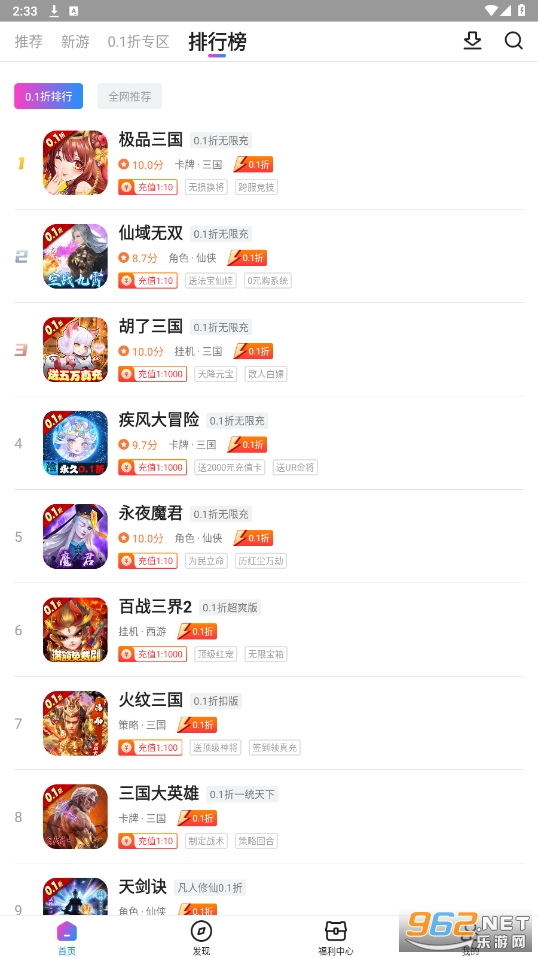 众众手游平台是一个提供手机游戏的平台,用户可以在平台上下载各种手机游戏。该平台提供了很多优惠活动,其中一项是0.1折的折扣。用户可以以折扣价购买他们喜欢的游戏。领取超多的福利和各种优惠,轻松畅玩自己喜欢玩的游戏!