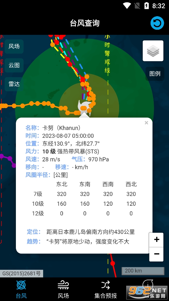 《台风查询app》是中山市游侠网络科技有限公司推出的一款查询台风的手机软件,台风是非常恐怖的自然灾害,我们可以在台风查询app中去实时的查询台风的路劲,可以了解台风最新的名称、位置、风力、风速、移向、半径等等各种信息。