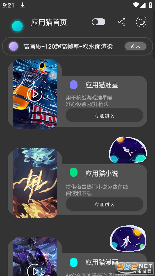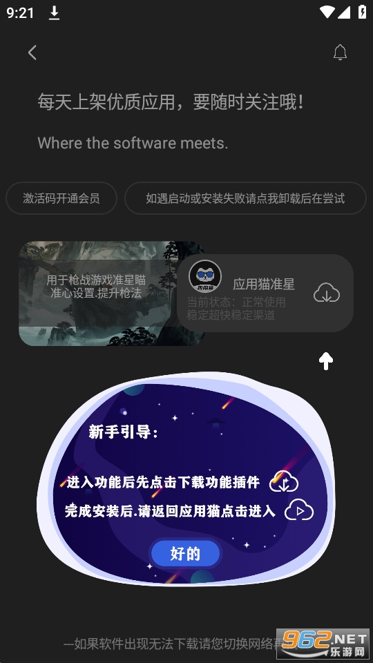 应用猫是十分好玩的一款手机工具资源软件,软件内为用户提供了丰富多样的辅助工具涵盖了包括绘画辅助、画质辅助、灵敏度调节、准星调节等诸多功能,有着丰富的应用资源可供用户进行下载,自动提供相应的安装与更新,为用户带来方便的应用管理。