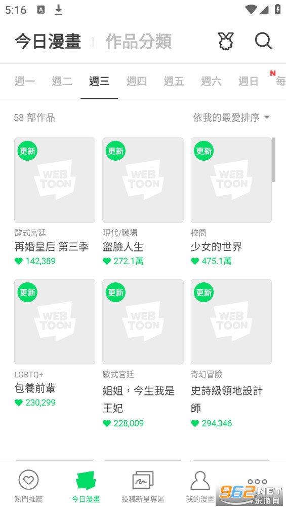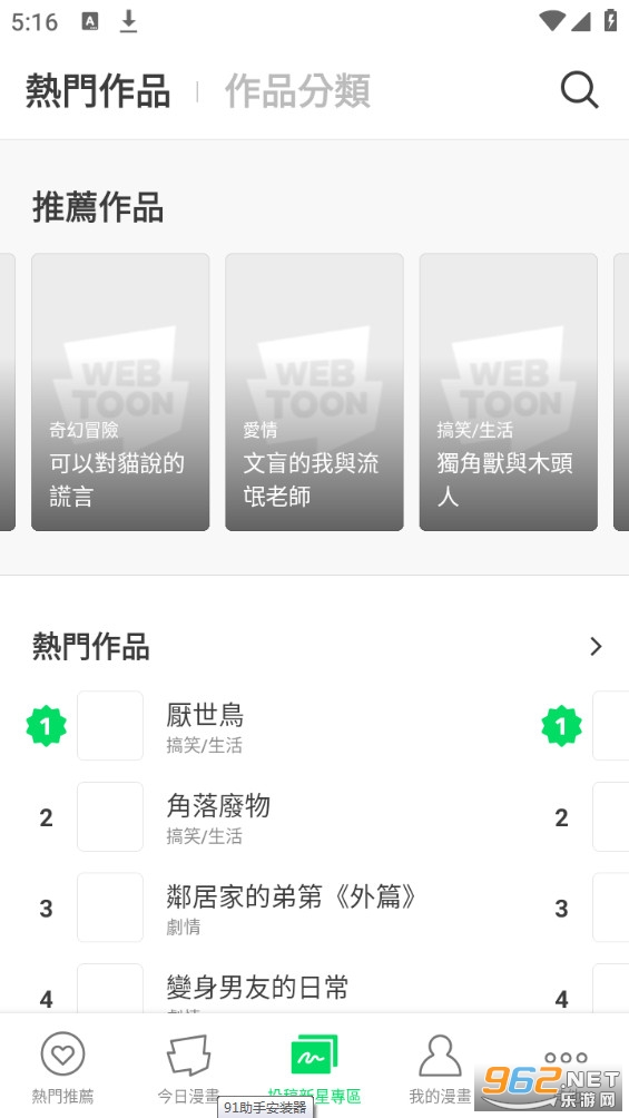 3、每日皆会更新近十部的连载漫画作品,让使用者免费收看,多元化的题材可以满足各种不同类型的读者,