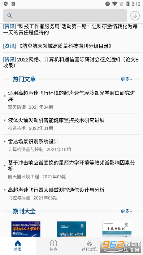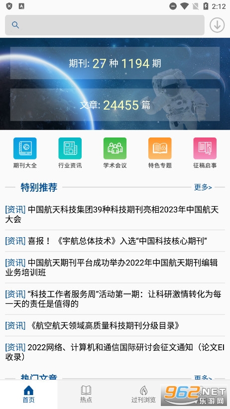 5、中国航天期刊平台安卓最新版又根据不同的类型划分了相应的统一专区,类似专题的就在特色专题里面、资讯的的行业资讯中;