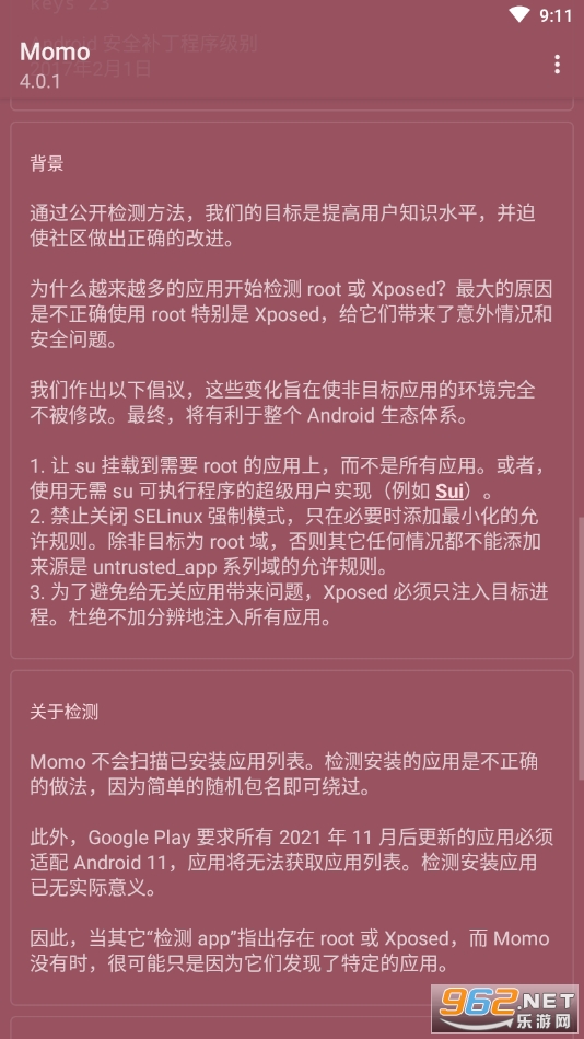 Momo检测是一款非常好用的手机工具软件,现在很多朋友都会对自己的手机进行root修改,但是现在有不少软件都会检测大家的手机root状态,影响实际的操作,这款软件则能帮助你隐藏root状态。