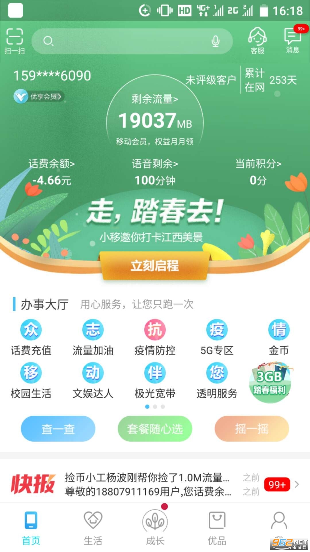 中国移动在江西省推出的一款手机应用程序。该应用程序旨在为江西省的用户提供方便快捷的移动服务。提供了多项实用功能,如查询套餐余量、办理业务、缴纳费用、查询通话信息和发送短信等。用户可以通过该应用了解自己的套餐使用情况,并根据需要进行套餐升级或调整。此外,用户还可以通过应用办理业务,如办理充值、开通流量套餐、办理停机报停等,节省了用户前往营业厅办理的时间和精力。