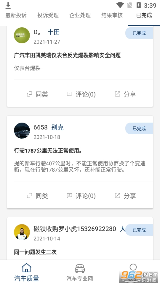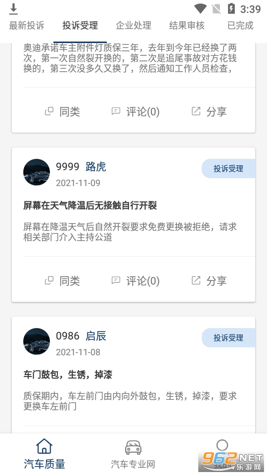 一款非常好用的主要以汽车质量投诉为主的软件,还可以在软件内找到专业的律师对这种情况进行咨询,让你能够尽量省心快速的解决汽车的质量问题。