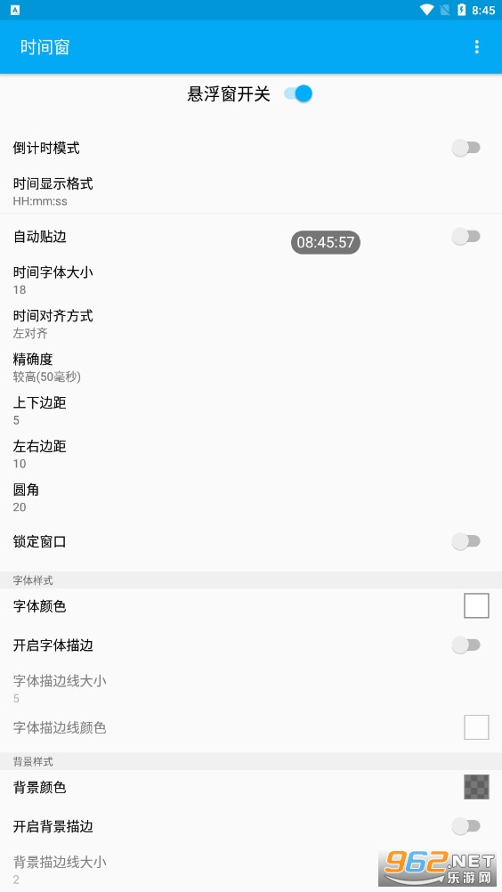 一款简单好用的手机悬浮窗时间软件,通过悬浮窗功能来显示实时的时间,同时还有着多种不同的功能可以自由的进行设置,软件的操作简单容易上手,如果有需要的话就快来下载试试吧!
