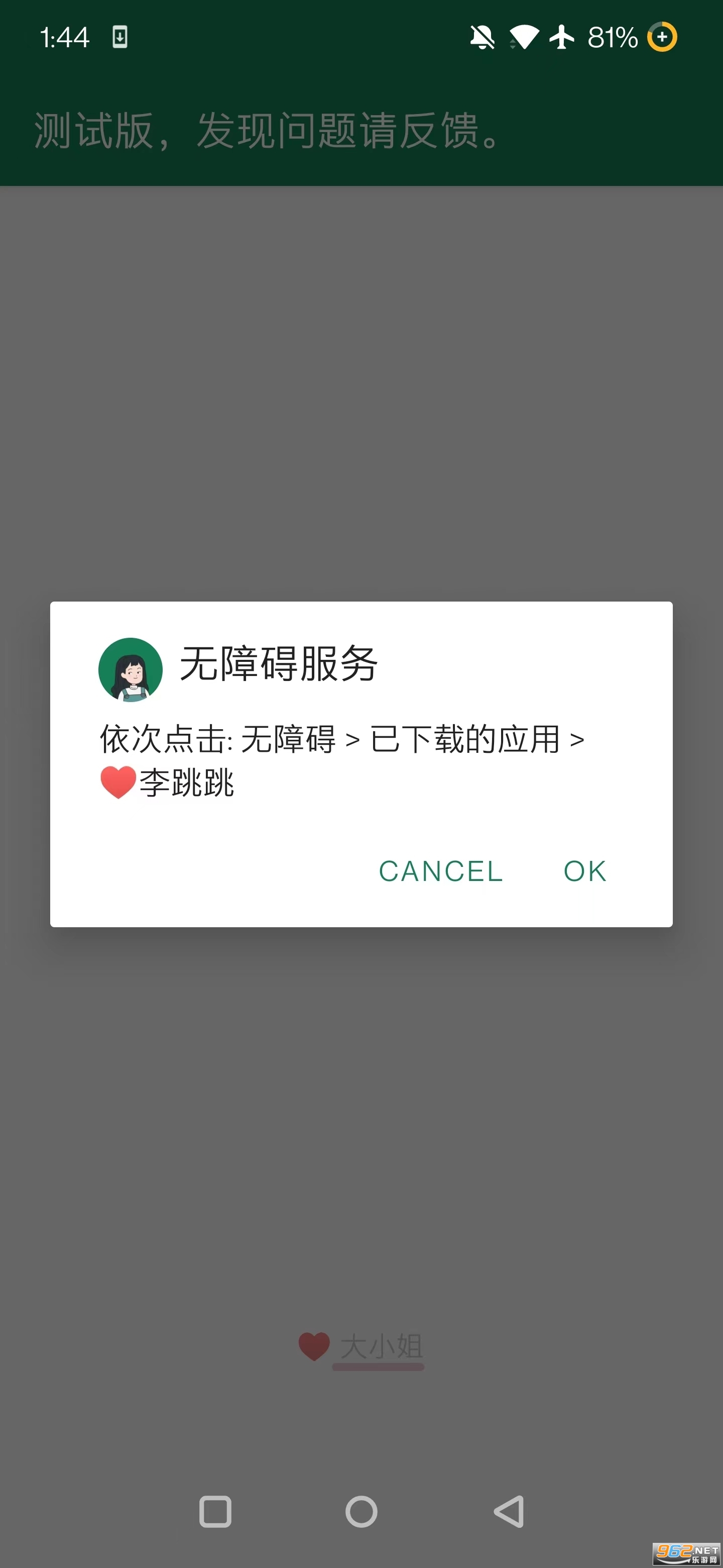 1、打开软件之后就会出现弹窗,点击弹窗中的【OK】进入到手机无障碍设置功能中;