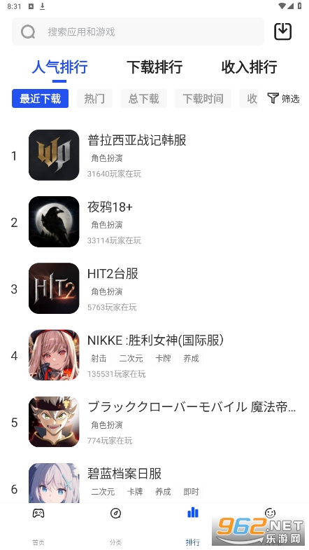 1、精品游戏库,支持按照游戏种类和人气排序。