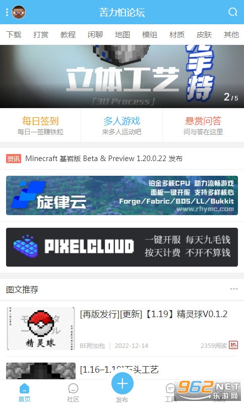 苦力怕论坛APP是一个专门为我的世界的小伙伴们带来的聊天,参与,下载我的世界各类模组的论坛交流平台,苦力怕论坛APP里面聚集了超多的喜欢我的世界游戏的玩家,大家能够在这里讨论交流我的世界的更多的玩法,里面包括了游戏的材质,模组,辅助工具等等,全部应有尽有,需要的用户来下载一个吧。